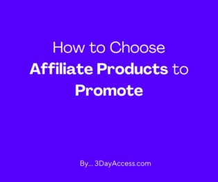 - How to Choose Affiliate Products to PromotePart 1… How to Choose Affiliate Products to Promote (Part 1) – Checkout our 3 Day Challenge at 3DayAccess.com Let’s dive in. We’ll talk about larger product marketers for a… Read more: How to Choose Affiliate Products to Promote
