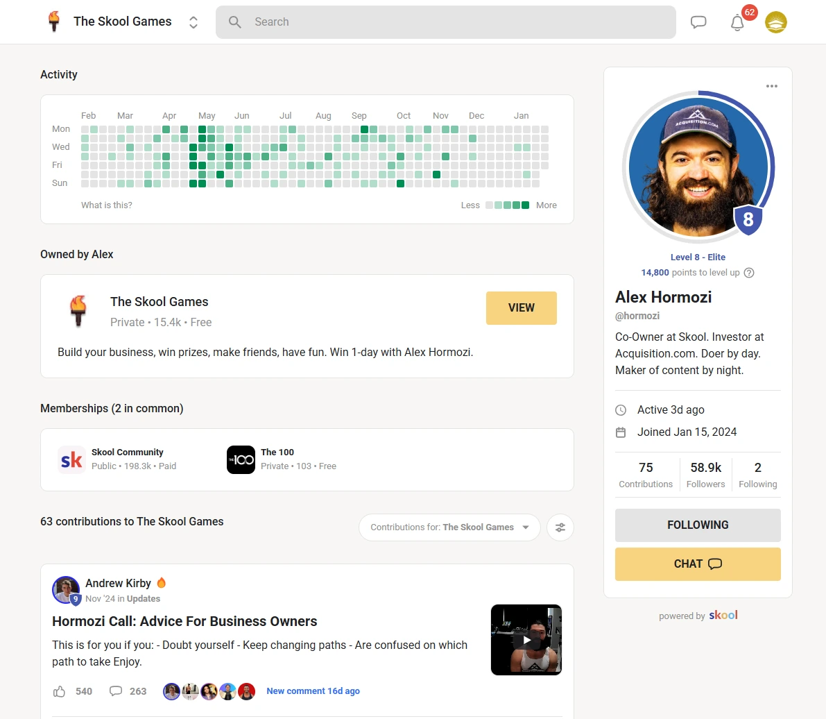 Alex Hormozi collaborated with Skool to host The Skool Games — a challenge to help you build your Own Online Business.